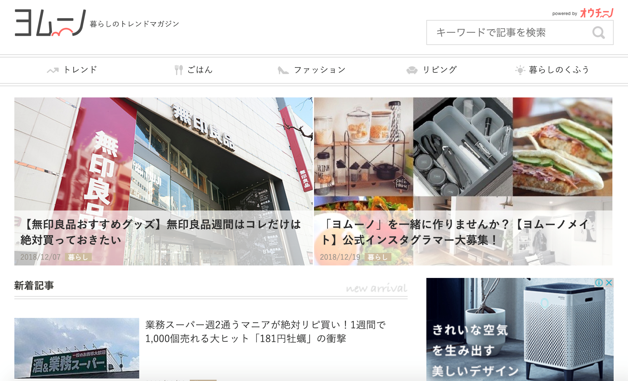 リニューアル前の「ヨムーノ」は、オウチーノのオウンドメディア的な立ち位置で、住まいに関するアンケートデータなどを記事化して配信していました。それを2017年3月にオウチーノの経営体制が変わり、2017年10月に20~40代女性向けの「暮らしメディア」として方向転換しました。