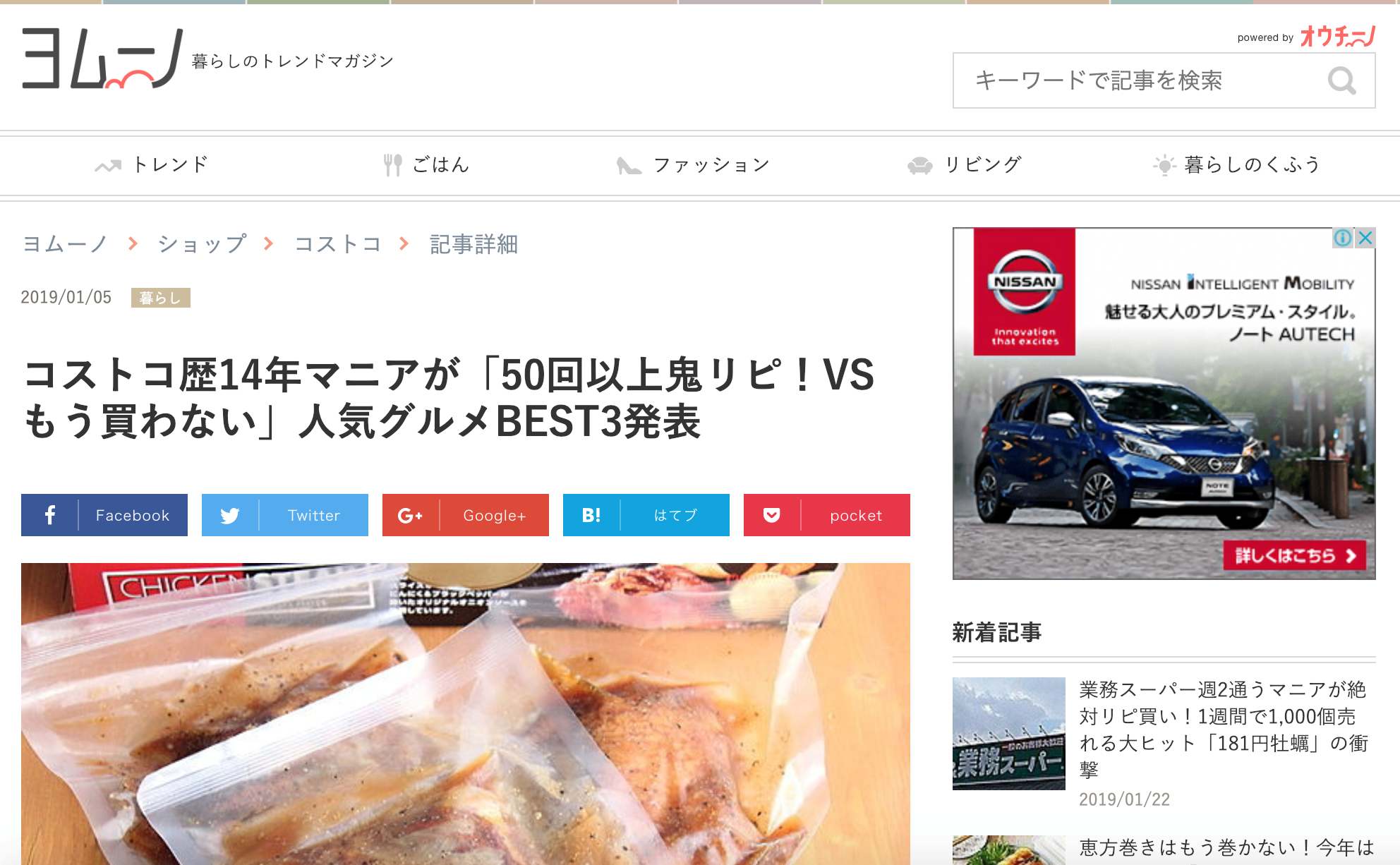コストコやカルディ、ニトリなど、コスパが良くて行くとワクワクするお店系の記事は人気がありますね。「コストコ歴14年のマニアが絶対リピートする1品」や「コスパが良くても買わない1品」みたいな企画です。