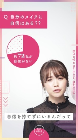 準グランプリの資生堂ジャパンの「MAJOLICA MAJORCA×ゆうこす 若者メイク実態調査」は、若者が抱える「メイク悩み」の実態調査し、それらの結果をインフォグラフィックで分かりやすく紹介。話者として若者層から支持を集めるタレントのゆうこす(菅本裕子)を起用して、可視化された悩みへの共感が生まれるように心がけた。