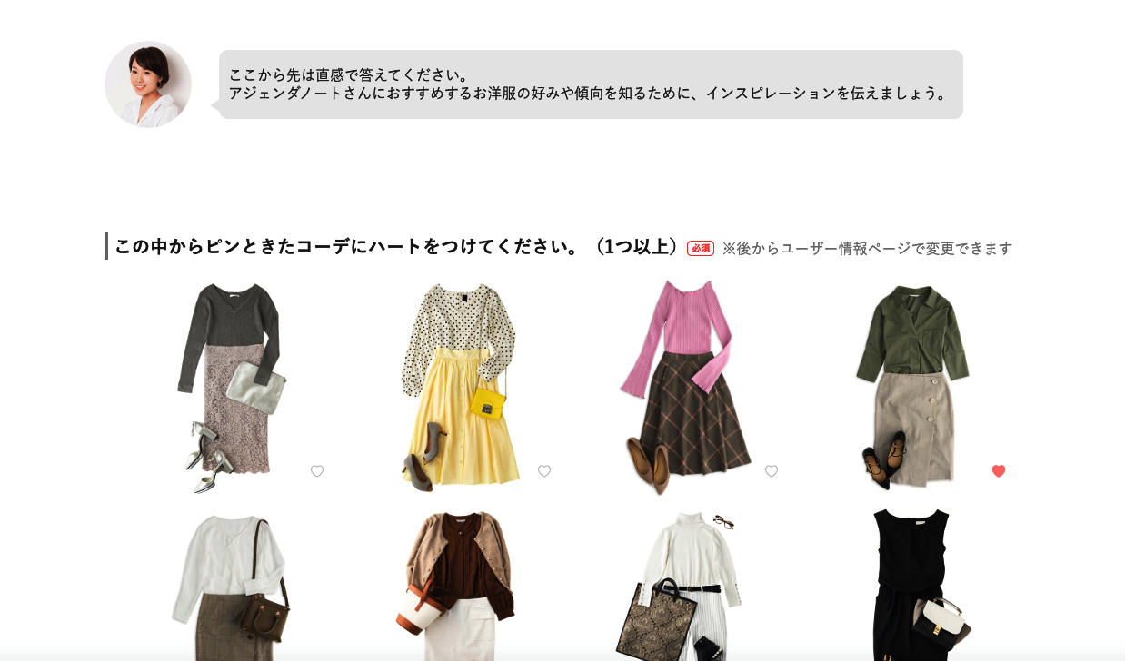 天沼 そうです。でも、田岡さんがおっしゃる通りで、新規申込者への1回目にはセットで送って好みを当てやすくするという議論もありますが、現在は登録ステップの中でしっかり好みを聞いているため、お客さまごとにコーディネートを組み立てているんです。