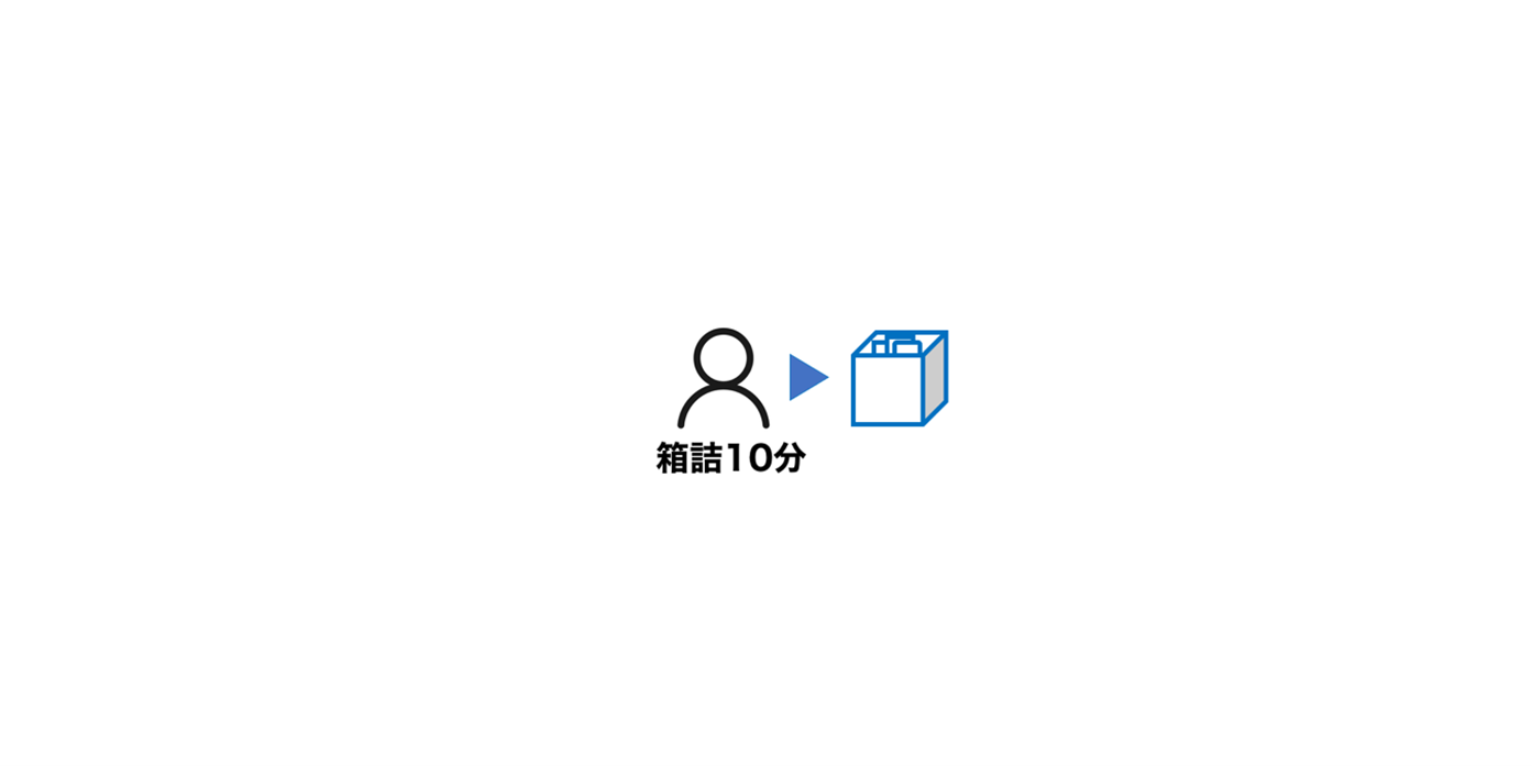ひとりで「箱にモノを詰める」だけの作業があった場合、詰めるのに10分かかるなら、1時間で6箱詰めることができます。