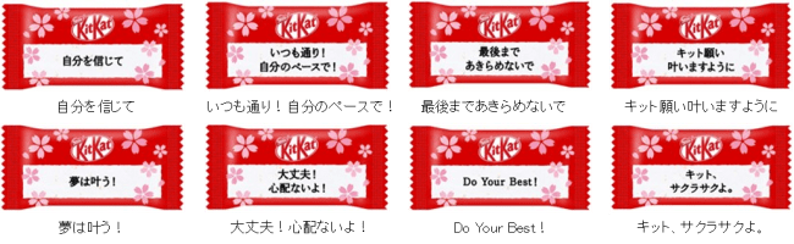 ただし、やはり「キットカットできっと勝つ」という語呂合わせは、ブランドの観点からはよくないということで「きっとサクラサクヨ」というコピーを考え、2003年1月から受験生応援キャンペーンをスタートしました。