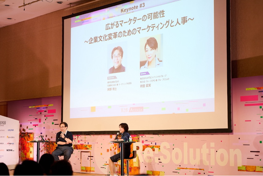 B2Bマーケティングをテーマにしたカンファレンス「B2Bアジェンダ2023」が9月20日、静岡県・浜松市(THE HAMANAKO)で開催された。その中では、「広がるマーケターの可能性~企業文化変革のためのマーケティングと人事~」と題して、前職のアドビ日本法人で副社長としてマーケティングや広報などを統括し、現在はみずほフィナンシャルグループでグループCPO(Chief People Officer)兼 グループCCuO(Chief Culture Officer)として人事と企業文化の変革に挑戦する秋田夏実氏をスピーカーに迎え、横河電機 常務執行役員 兼 マーケティング本部長の阿部剛士氏が聞き手を務めたセッションが行われた。マーケティングと人事における共通項を紹介しながら、変革を成功させるポイントを探ったディスカッションをレポートする。