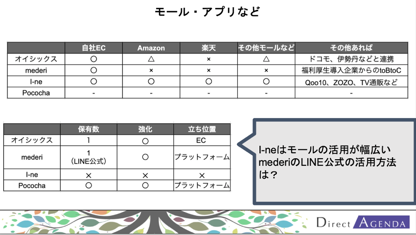 西井 まだ取り組んではいないけれど、ここについては今後、必要性を検討しているということですね。それから、ECモールやアプリの活用状況についてです。I-neはモールにすごく出しているイメージですが、活用の仕方はどのようにされていますか。