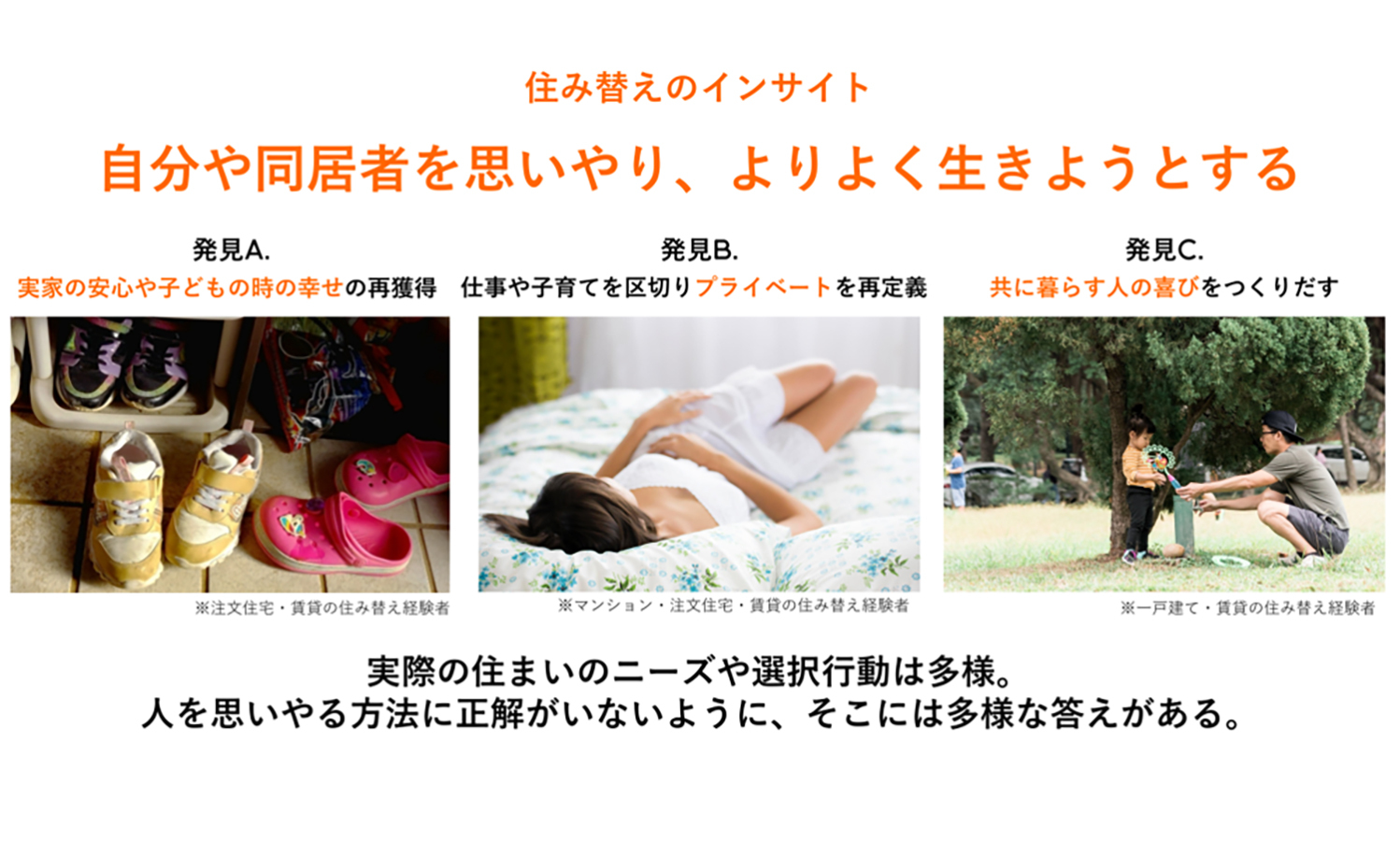 これまで私が不動産・住宅情報サービス「LIFULL HOME’S(ライフルホームズ)」のブランドに携わり、リサーチを通して得てきた住み替えのインサイトのひとつは「自分や同居者を思いやり、よりよく生きようとする」ことであり、消費行動の先で、手にしたい姿には豊かさや幸福感が内包されていると理解しています。