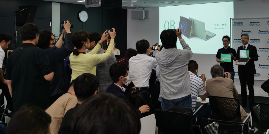 2年目の2023年9月末まではマーケティング部のPR担当として、BtoB向け新製品の記者発表会の企画・運営を担いました。モバイルパソコンの「レッツノート」や頑丈パソコンの「タフブック」を担当し、記者発表会では会場手配や記者への案内、発表用プレゼン資料やプレスリリースの作成などもしていました。記者の中にはガジェットやPCに非常に詳しい方もいらっしゃるので、想定質問をつくって共有したりしていました。