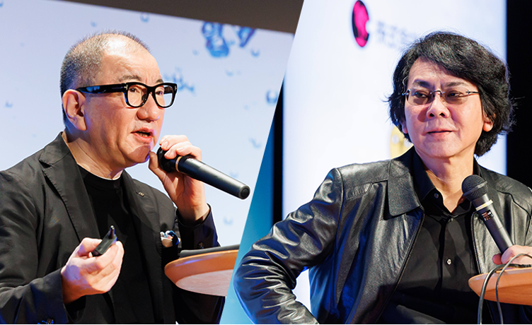 「ネプラス・ユー京都2024」でセッションしたDeloitte Consulting パートナー 執行役員の馬渕邦美(左)とAVITA 代表取締役社長 CEO/CTOの石黒浩氏。