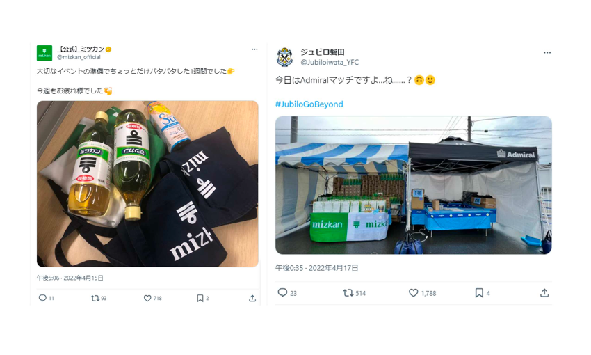 田中 その後、2023年の1月にXでプレゼント企画が始まり、そのときはジュビロ磐田さんもXで拡散してくださり、「#アドミツカン」でトレンド1位を獲得できました。この企画は、あくまでも「アドミラル×ミツカン」のコラボでしたが、きっかけとなったジュビロ磐田さんのファン・サポーターも喜んでいただき、最高のコラボレーションになりました。この時点で、ジュビロ磐田さんのファン・サポーターからミツカンという会社を迎え入れていただける体制が整ったと考えています。