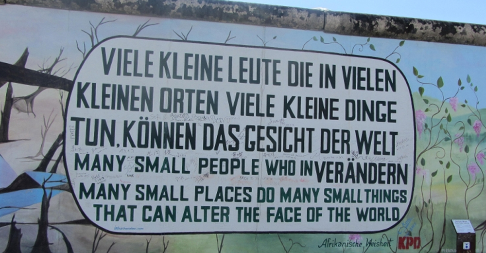 かつて東西ドイツを隔てていた「ベルリンの壁」には、いまこんなメッセージが掲げられています——小さな人、小さな場所、小さなものが世界を変えることにつながる、と。