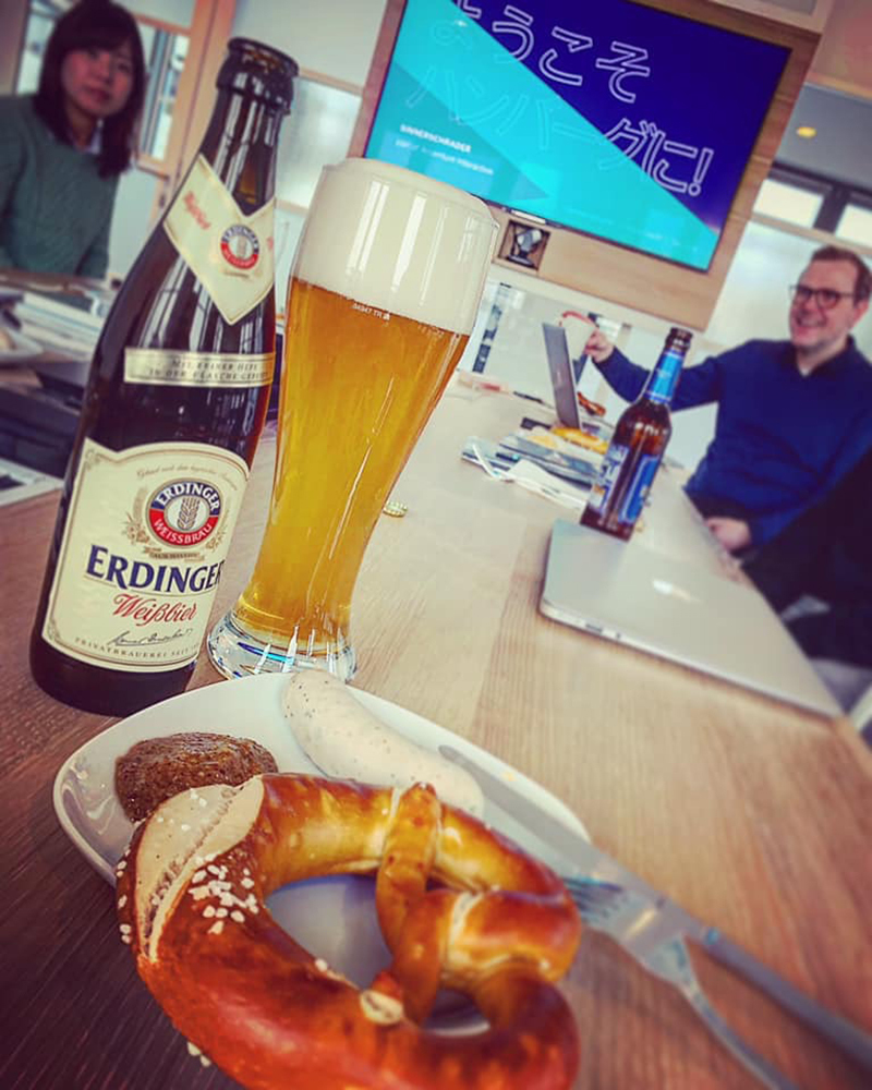 4社目に訪れたのは、アクセンチュアの傘下にあるエージェンシーSINNERSCHRADER(ドイツ・ハンブルク)です。なんと、朝の訪問だったのですが、ドイツらしく白ソーセージとビールをご用意いただきました(笑)。
