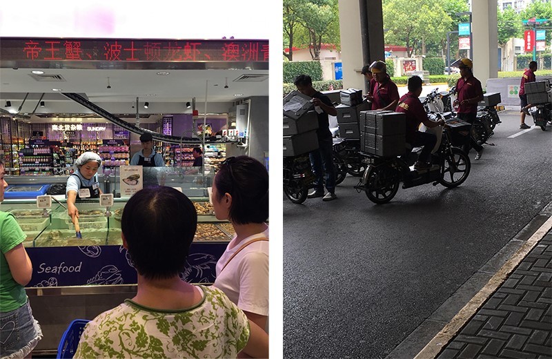 ニューリテールの代表であるアリババグループの「盒馬鮮生(フーマーフレッシュ)」は、店内の生け簀からそのまま新鮮な魚介類をピックアップし、配送用の食材が店内のベルトコンベアで移動していく独特なオペレーション、3キロ圏以内30分で配送という驚異的なスピードが目を引くため、中国のみで許される特殊な店舗と理解されている。