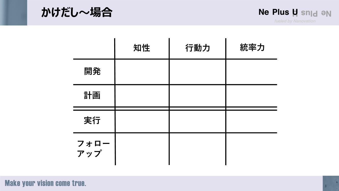 3つ目の「統率力」は、行動力や知性は乏しくても知性や行動力がある人を上手く巻き込めるので、「その人がいることで何かしら物事が前に進むリーダーシップ」を持っている人が当てはまります。