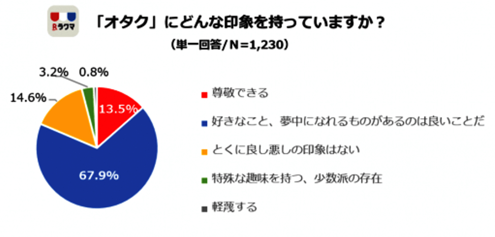フジテレビ「めざましテレビ」の調査では街の7割がオタクと公言。また、ラクマの調査でも女子高生の8割がオタクにポジティブな印象があると述べ、「自分はオタク」と回答した人も8割にのぼったそうです。