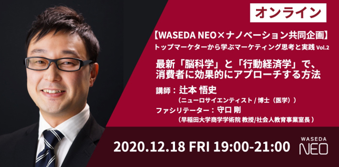 講師として登壇するのは、シンガポールのニールセンなどで活躍したニューロサイエンティストの辻本悟史氏。ファシリテーターは早稲田大学商学学術院 教授/社会人教育事業室長の守口剛氏が務める。
