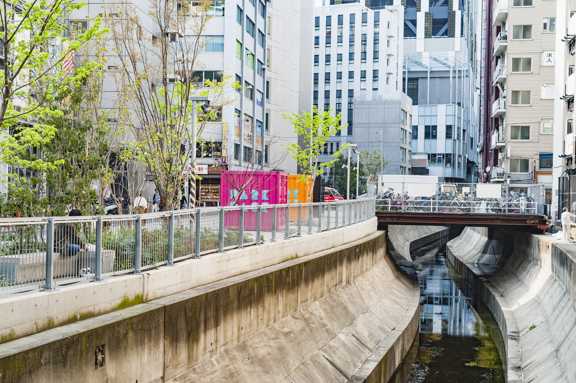 新しいまちづくりとともに再整備されこの川辺環境は、ストリートとも公園とも異なる、これまでに無かった「個性的な場」となる可能性を秘めている。昨年オープンした渋谷ストリームを中心とした新しい渋谷駅エリアから代官山・恵比寿方面に抜ける「新しい歩行者動線」としての役割に加えて、地元や来街者にとっての「新たなパブリックスペース」としての活用も期待されている。渋谷の駅近に、この様な空間があったのかと思うほど、実はまだ未開拓エリアなのだ。