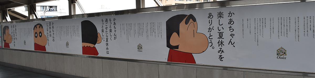 この広告は、小学生の夏休みが終わるタイミングに合わせて、クレヨンしんちゃんの野原家が住む街・埼玉県春日部駅のみに8月26日~9月1日に掲出しました。