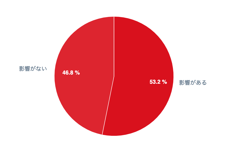 マーケティング活動(または、その支援活動)への影響を尋ねたところ、53.2%が「影響がある」と答えた。
