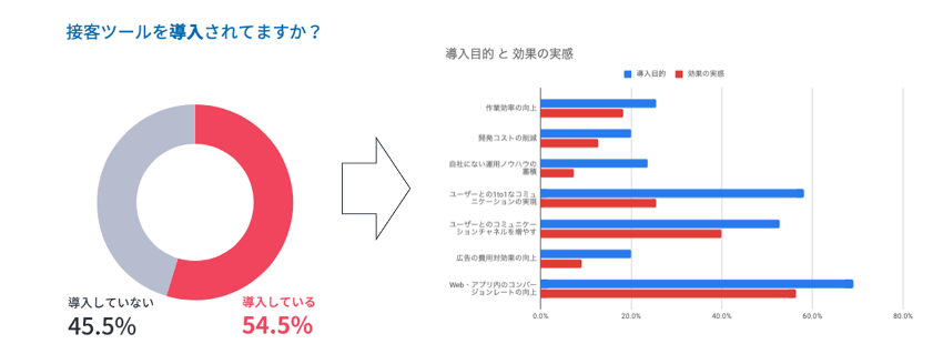 そうしたツールを自社Webサイトに導入することで、PDCAの高速化やコミュニケーションの自由度の向上に取り組んでいるわけです。そして、Web接客ツールを導入している企業の約半数は、その効果を実感しているという結果になっています。