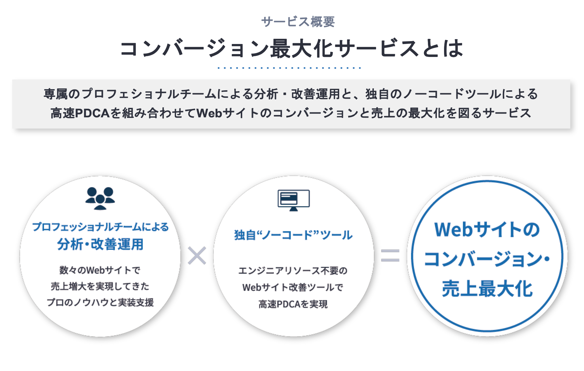 ――カスタマーサクセスに強いツールベンダーとして、次の役割はなんだと思いますか?先ほど、私は「ツールのみを提供したところで、PDCAをうまく回せる人は少ない」と言いました。つまり、企業のマーケティングのノウハウ不足が問題なので、私たちのようなツールベンダーが支援を強化しなければ、CVRは向上しにくいと気づいたのです。それがきっかけで、今年の4月にリリースしたのが「コンバージョン最大化サービス」です。