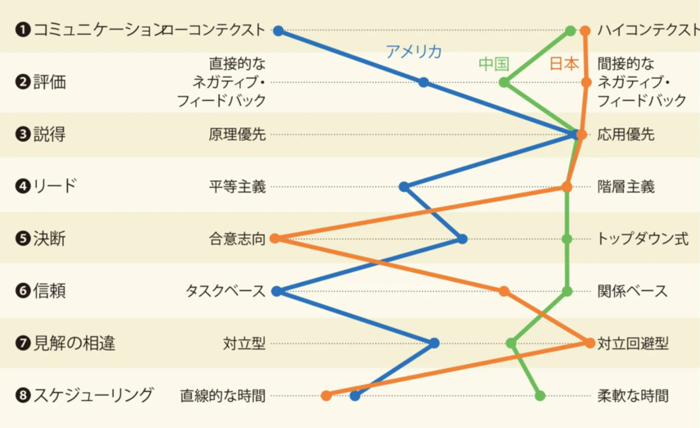 カルチャーマップでは、日本や中国などアジア圏はオブラートに包んだコミュニケーションが好きとされ、ヨーロッパ圏は直接的な表現やコミュニケーションになるといいます。