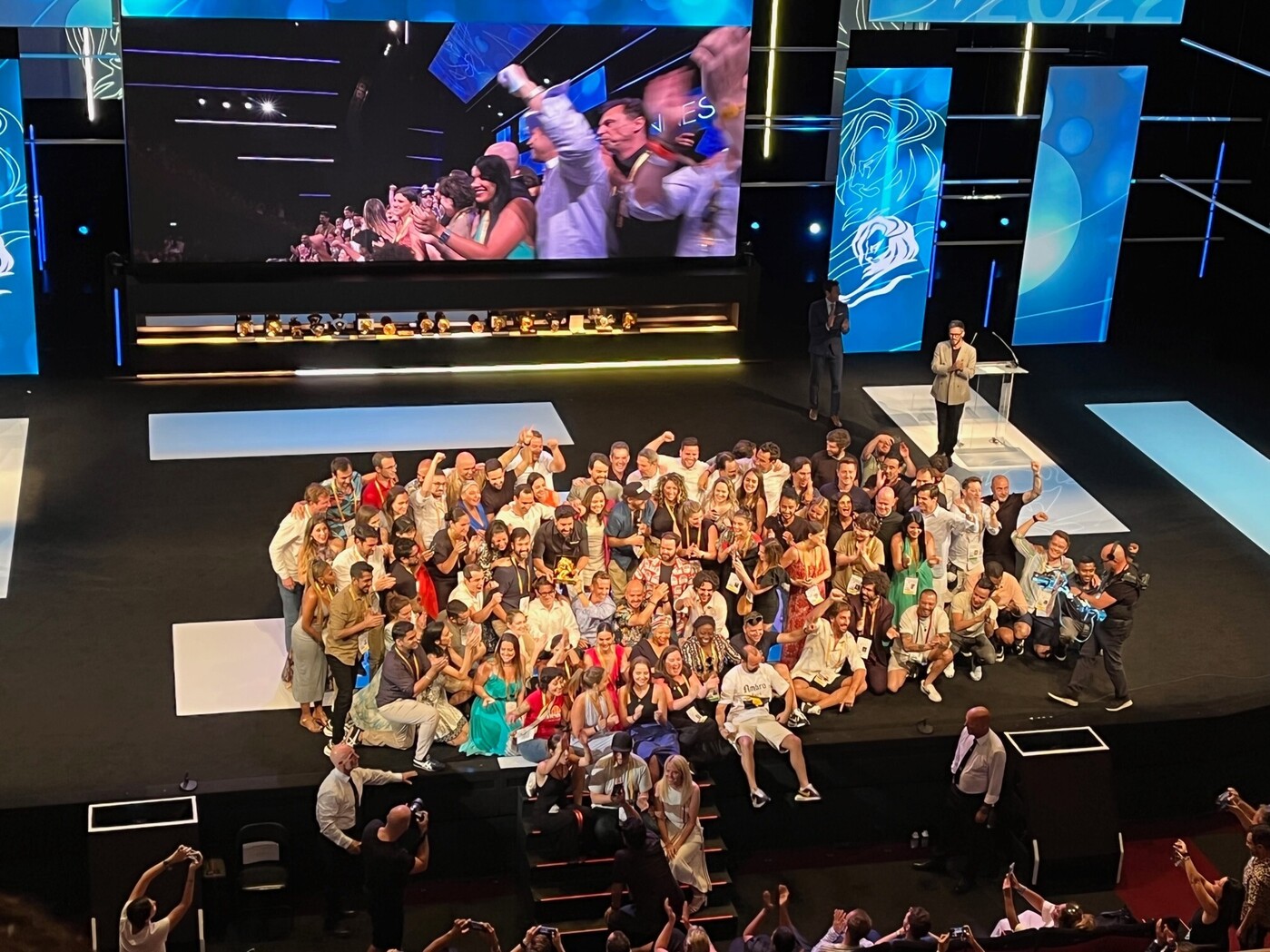 カンヌライオンズ2022の贈賞式に何日かに渡って複数回出席するうちに感じたのは、登壇者の弾け具合も、観客の歓声と拍手も、例年より強く勢いがあるということです。私は一つひとつの作品や事例についてよりも、まず会全体の雰囲気をそう感じました。ある部門の審査委員長は贈賞式の挨拶で観客に向かって、「Hello Human、みんなにリアルで会えて本当に嬉しいよ!」と語りかけています。「リモート開催」について、この業界の多くの人々が、大きなストレスを感じていたということでしょう。