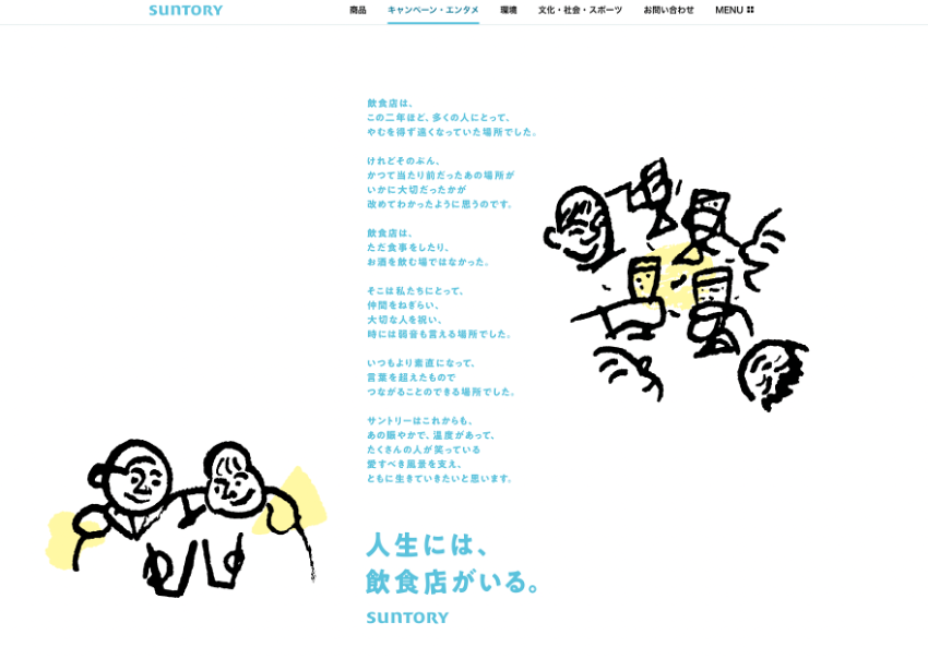 自社ではなく、ビジネス仲間を応援。サントリーの秀逸企画「人生には、飲食店がいる」