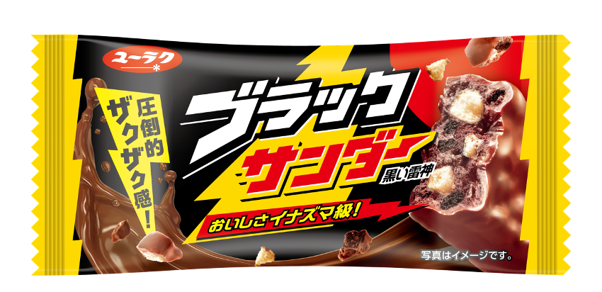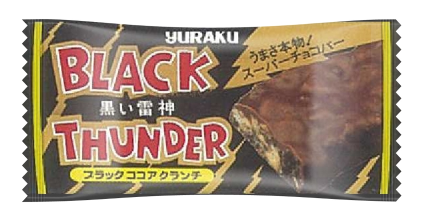 河合 まず、中にココアクッキーを使用していて、それが黒いので「ブラック」にしました。そして駄菓子なので子どもが好きそうな戦隊モノらしい名前をつけようと考え、「ブラック」の後ろに「サンダー」を付けて「ブラックサンダー」という商品名になりました。3代目のパッケージで、それまではアルファベット表記だった商品名をカタカナ表記に変更したのです。そこから売上が一気に伸びました。