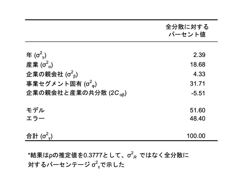 これに基づくと、確かに「産業で説明できるもの」も「セグメント固有で説明できるもの」も重要という結果が出ています。そして、この結果は他の複数の研究でも再現されているようです。