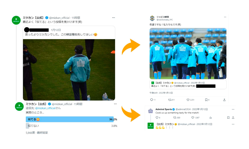 また、X上で「似てる」「似てない」というアンケートを取った結果、約6000人中の96.2%の人に「似てる」と回答しました。その後、ジュビロ磐田さんの公式アカウントからも反応していただきました(笑)。
