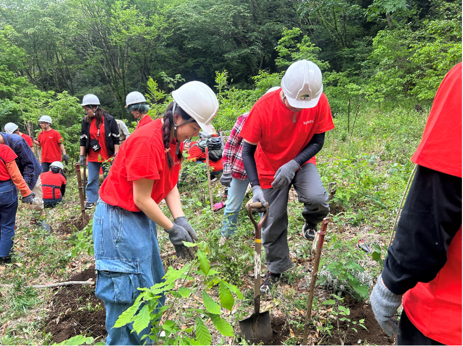 パーパスを社員一人ひとりに周知するための取り組みとして、社員がいるすべての国で、その国の社員の人数分の木を植えました。それぞれの国に根ざしながら(=each of us)、ともに(=Togeter )成長していくという意思を伝えるためです。