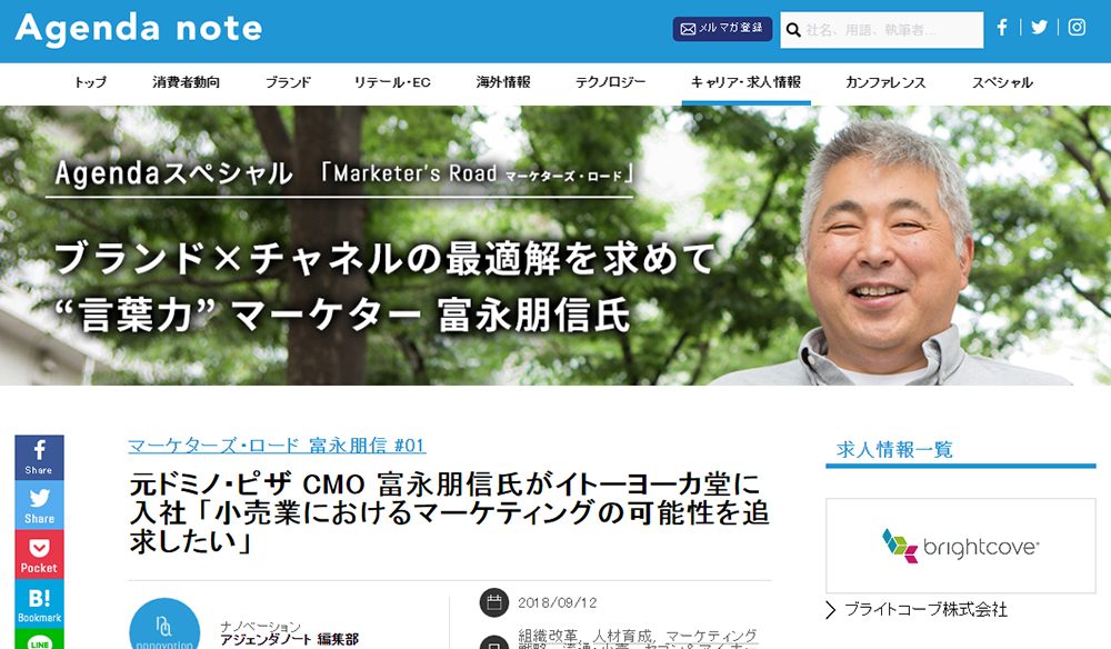 9位元ドミノ・ピザ CMO 富永朋信氏がイトーヨーカ堂に入社 「小売業におけるマーケティングの可能性を追求したい」