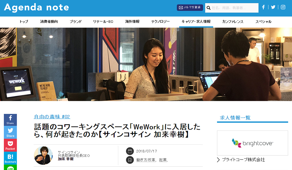 8位話題のコワーキングスペース「WeWork」に入居したら、何が起きたのか【サインコサイン 加来幸樹】