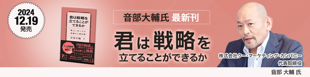 P&Gのマーケティング・ディレクターを経て、ユニリーバ、日産自動車、資生堂など数々の企業でマーケティング組織改革を実行してきたクー・マーケティング・カンパニーの音部大輔氏の最新刊『君は戦略を立てることができるか 視点と考え方を実感する4時間 』(宣伝会議)が、2024年12月19日に発売される。