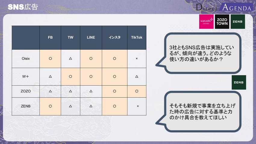 「Twitterは地域別の成果が測りにくいので出稿していません」と、ZOZOの山﨑氏は言います。同じく各社ともに、Twitterは成果が測りにくいと感じているためか、広告出稿は限定的のようでした。