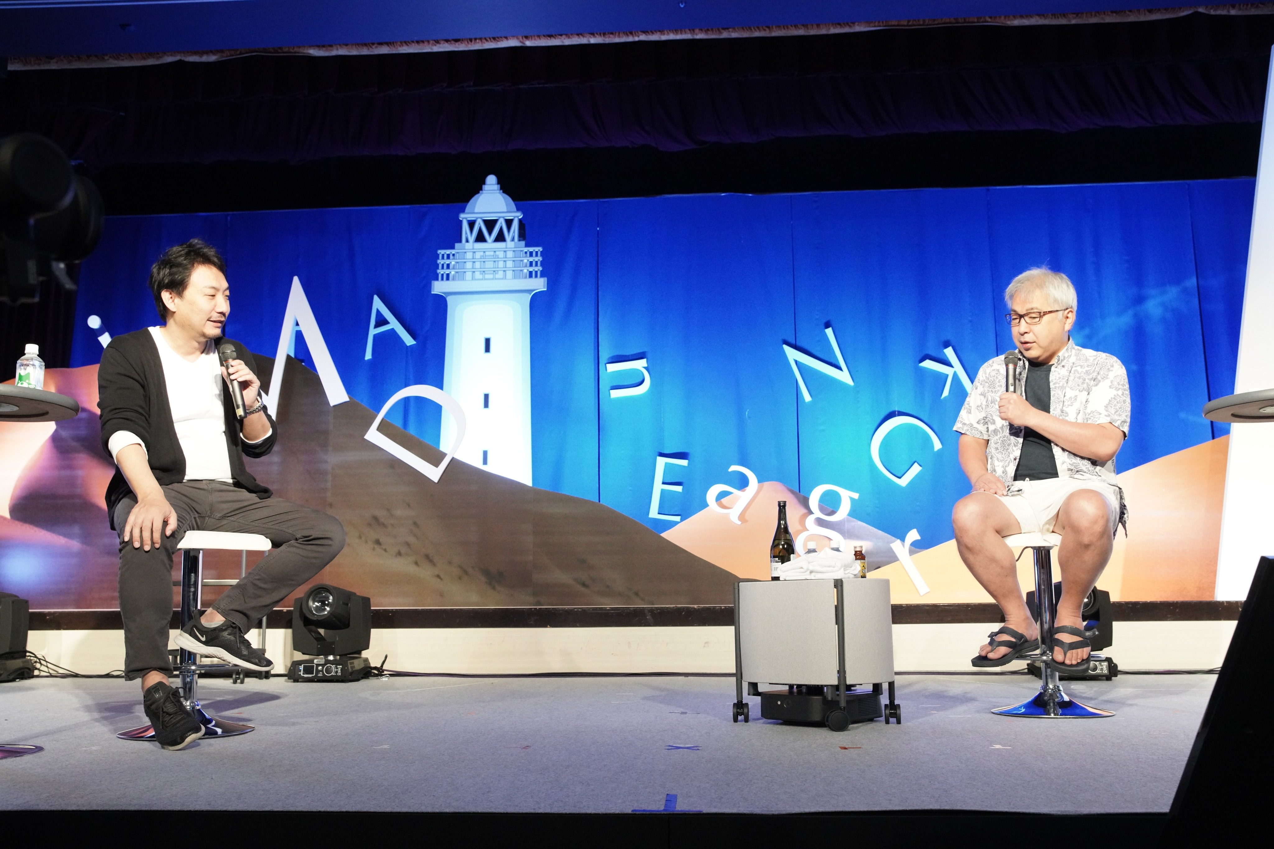 「すべての人にロボットを。」というPreferred Roboticsのビジョンのもと、消費者の生活の中からアイデアを発想し、AIを搭載することで人の指示で家具を動かす家庭用自律移動ロボット「カチャカ」をステージ上でデモをしながら紹介した。礒部氏は、「アイデアの実現のためには、信念の強さが一番大事だと思います。一度やろうと決めたことを中途半端に止めない。チームメンバーの心が折れなかったからこそ、『カチャカ』を開発・販売することができた」と語り、富永氏も「一般家庭向けロボットを世の中に届けたいという礒部さんの信念の強さがあったからこそ誕生した」と続けた。