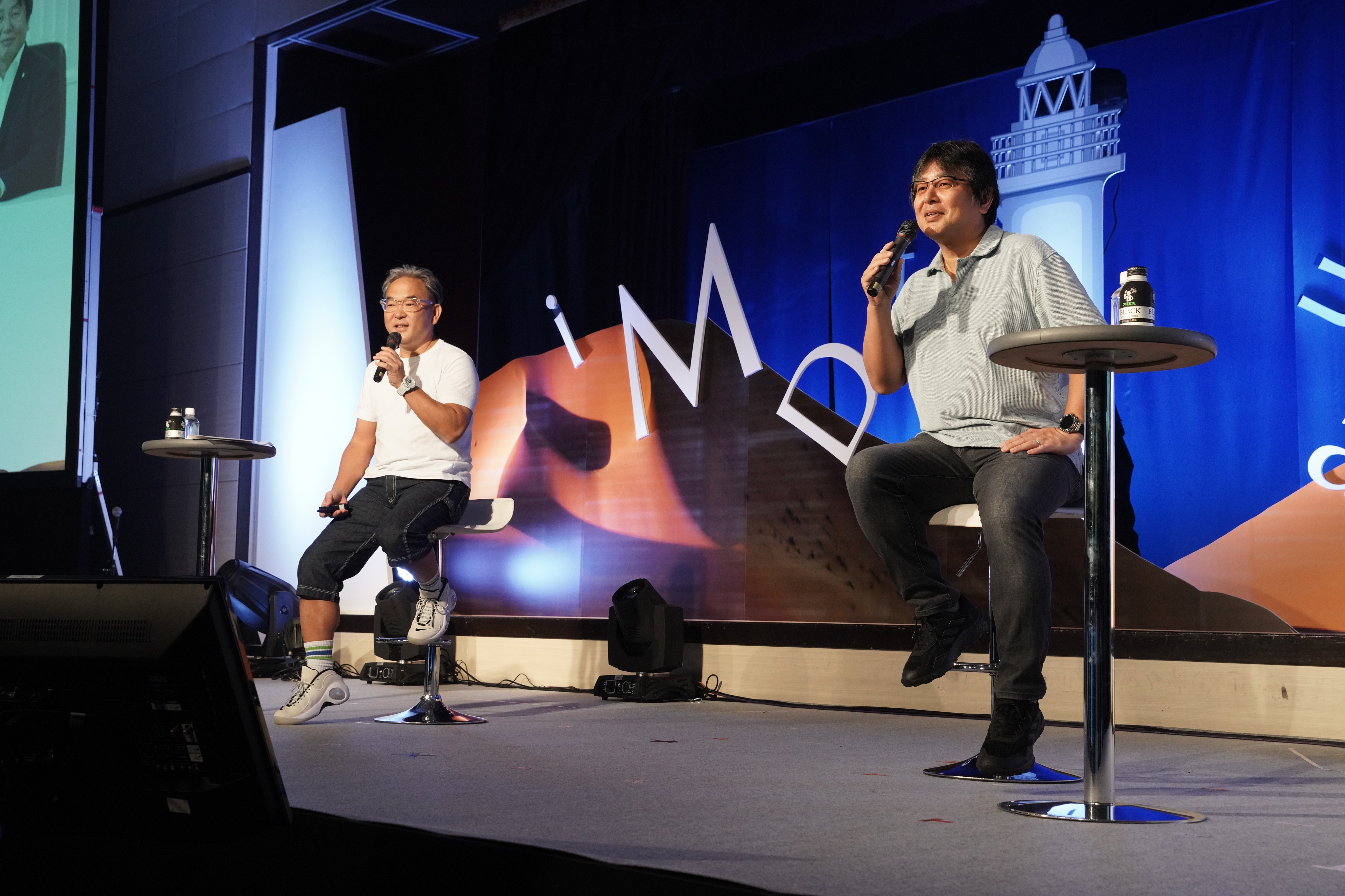 2日目のキーノートでは、「毎日の生活をアップデートするアイデア創生の技術~常識の盲点に着目し、幾多の困難を乗り越えた3年間~」をテーマに、Preferred Robotics 代表取締役CEOの礒部達氏、Preferred Networks / SVP 最高マーケティング責任者の富永朋信氏が登壇した。