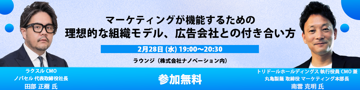 丸亀製麺が語る「マーケテイングが機能する理想的な組織と、広告会社との付き合い方」とは?【ブランド企業限定・アジェンダカンファレンス 参加者募集】