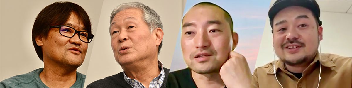 「SDGs」について語り合う志賀氏(左)と高山氏。西井氏と伊藤氏は滞在先からリモートで参加した