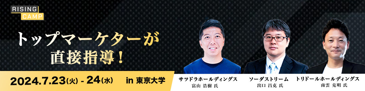 次世代を担う35歳以下のマーケターに特化した学びのキャンパス「ライジングキャンプ2024」(7月23~24日、東京大学 伊藤謝恩ホールで開催)で、登壇スピーカーが続々と決まっている。