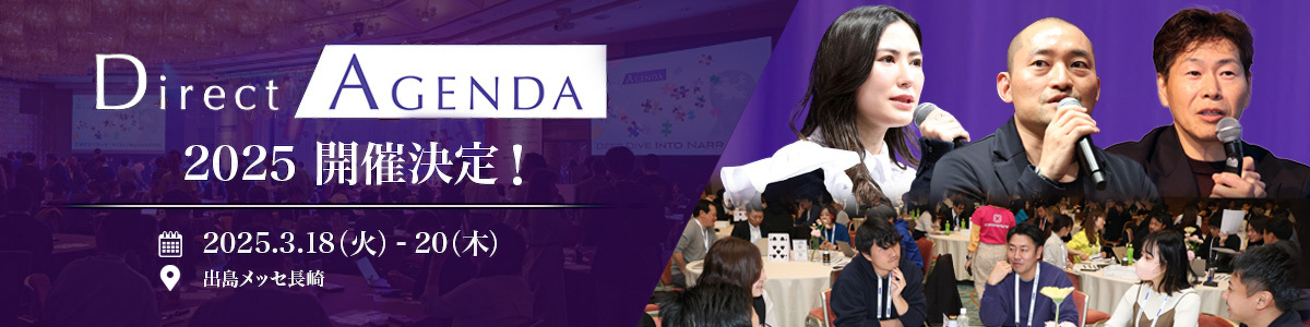 2025年3月18日から20日にかけて、直販・通販事業に携わるトップマーケターが集結するカンファレンス「ダイレクトアジェンダ2025(主催:ナノベーション)」が長崎県長崎市(出島メッセ長崎)で開催される。