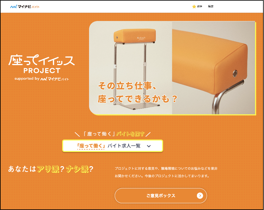 ▶︎マイナビ マイナビバイト「座ってイイッスPROJECT」