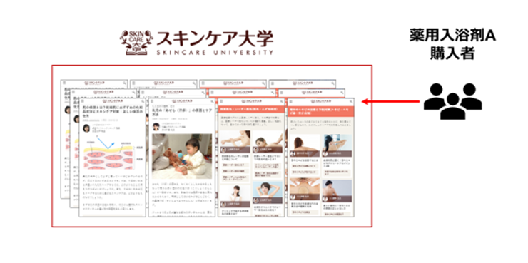 薬用入浴剤Aの購買者が当社メディアの「スキンケア大学」「ヘルスケア大学」で、どのような記事を閲覧していたのかを分析対象のデータとして扱いました。