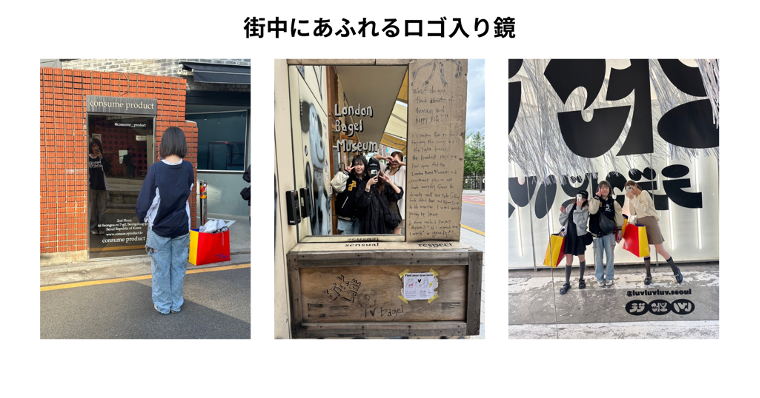 韓国の街中には「鏡」がいたるところにある。しかも、どれも思わずそこで撮影したくなるほどかわいい。街に鏡が溢れていることに気がついたのは、一緒に行った旅行インフルエンサーの友人が鏡を前に「写真撮りましょう!」とよく声をかけてくれたからだ。