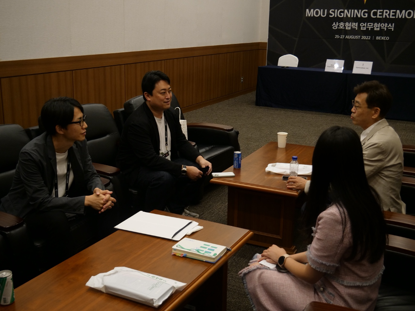 調印式は、MAD STARS 執行委員長のファン・ジン・チョイ(Hwan-Jin Choi)氏と、ナノベーション 代表取締役社長 CEOの中野博文氏が出席し、釜山国際広告祭の会場であるBEXCO(韓国・釜山広域市海雲台区にある国際コンベンションセンター)で行われた。