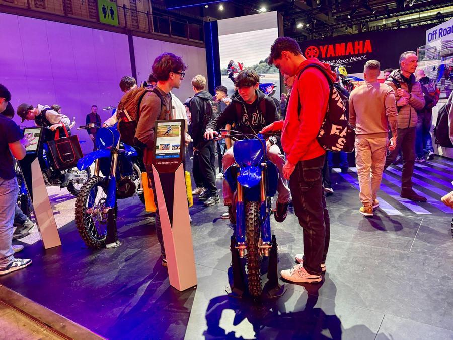 YAMAHA は青を基調としたカラーリングに加え、ネイキッドやオフロードなど車種タイプ別にゾーニングを行い、来場者の導線や滞留も含めて、客層が自然に分散される構成となっていた。