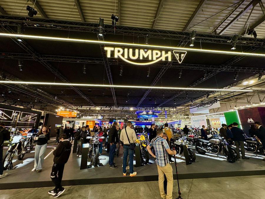 イギリスのメーカー TRIUMPH は、シンプルなブース設計ながら、来場者が自然に跨りやすいバイク配置がなされており、多くの人が実際に跨りながらその感触を確かめていた。ブース内にはイギリスを代表する楽曲が流れ、体験と空気感の双方からブランドの世界観を伝える設計となっている。