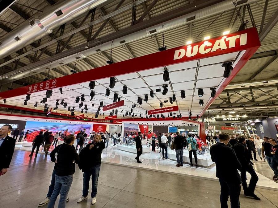 イタリアを代表するメーカー DUCATI は、コーポレートカラーである赤を際立たせた配色で構成され、どの視点から切り取っても一目でDUCATIらしさが伝わるブースとなっていた。