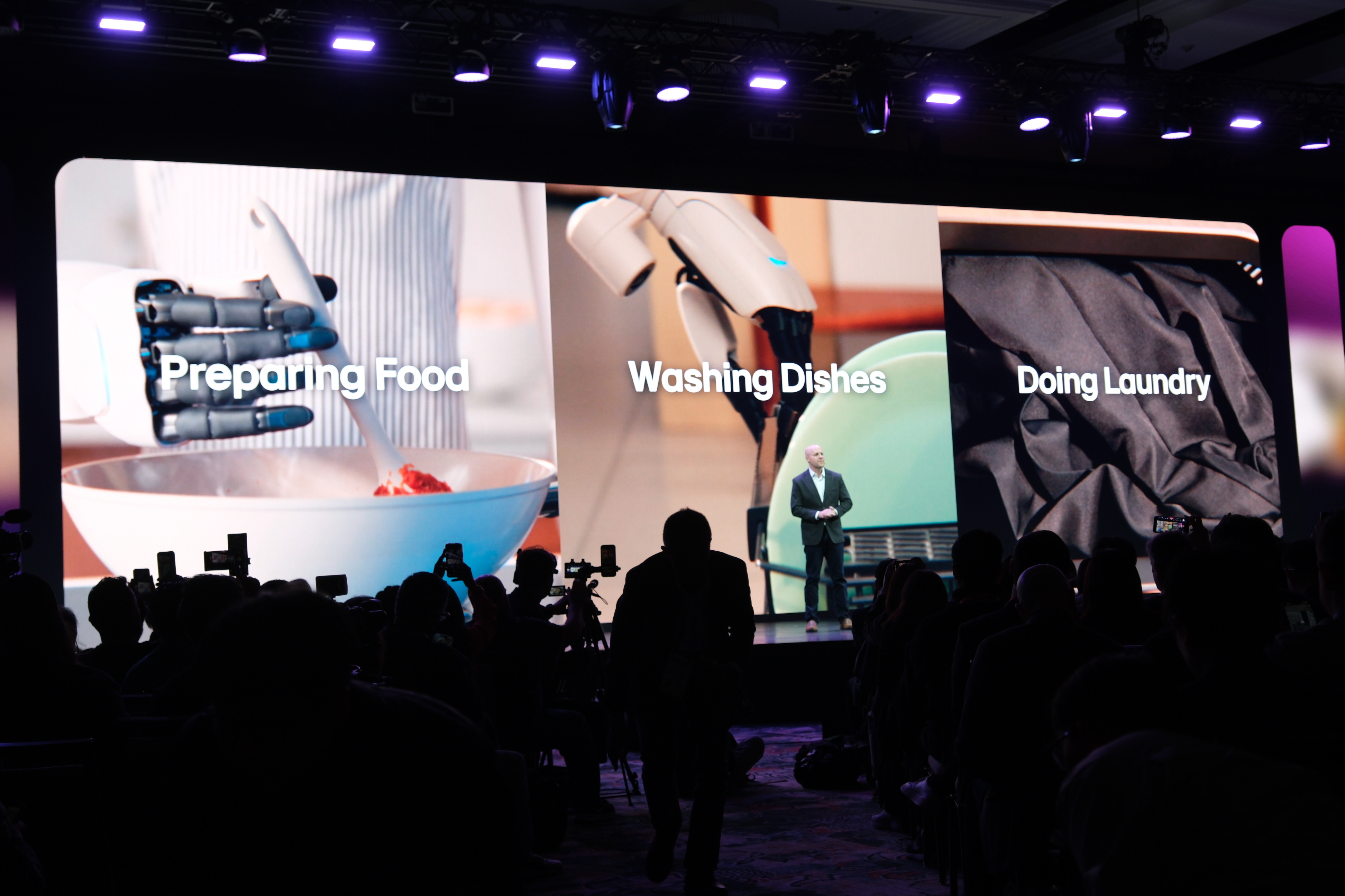 Samsungは自社のAI戦略を「AI Living」と定義し、AIを「Companion(相棒)」として位置づけた。スマートフォン、テレビ、家電、ウェアラブル、ディスプレイなど、年間約5億台を出荷するデバイスポートフォリオを前提に、AIをすべての製品とサービスに横断的に組み込む「One Samsung」戦略を強調した。