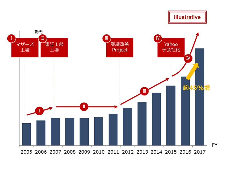 一休の取扱高推移。榊氏が「Ⅲ」の時期に一休のビジネスを再成長させることができたプロセスを解き明かしていく。