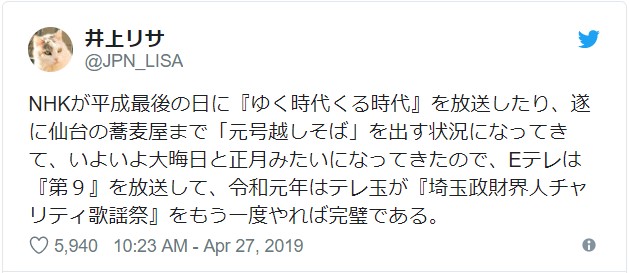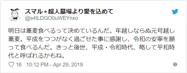 なかには昭和に比べて戦争の無い平和な時代だった平成に対する感謝もあって、これは年越しには見られないツイートだと思います。